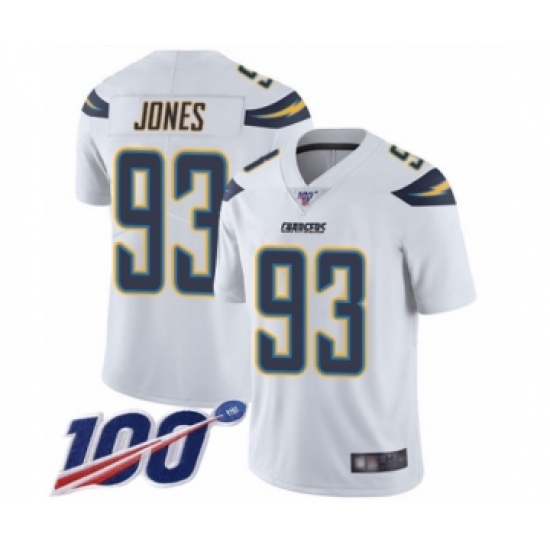 Men's Los Angeles Chargers #93 Justin Jones White Vapor Untouchable Limited Player 100th Season Football Jersey