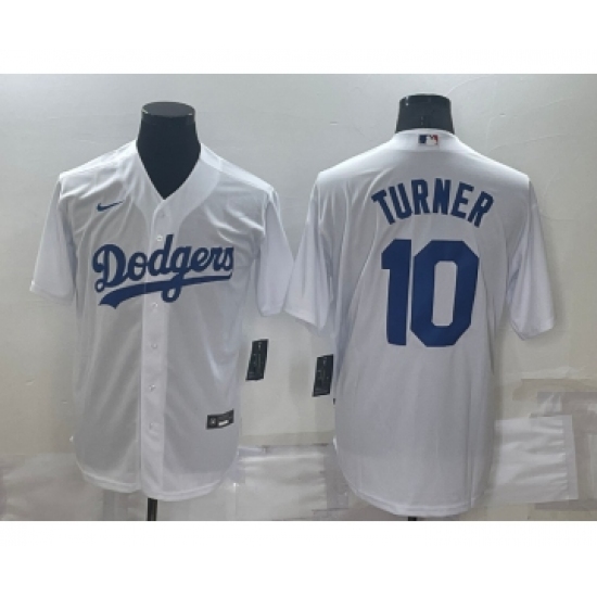 >Men's Los Angeles Dodgers #10 Justin Turner White Stitched MLB Cool Base Nike Jersey