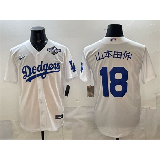 >Men's Los Angeles Dodgers #18 山本由伸 White 2025 World Series Cool Base Stitched Baseball Jersey