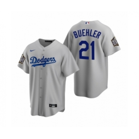 Men's Los Angeles Dodgers #21 Walker Buehler Gray 2020 World Series Replica Jersey