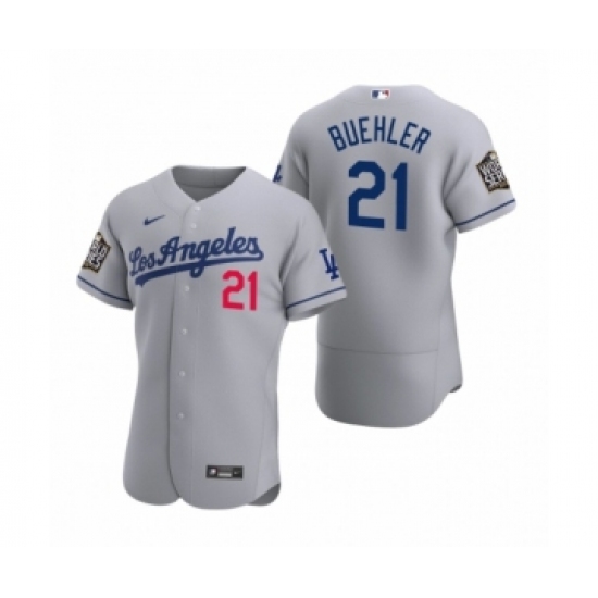 Men's Los Angeles Dodgers #21 Walker Buehler Nike Gray 2020 World Series Authentic Road Jersey