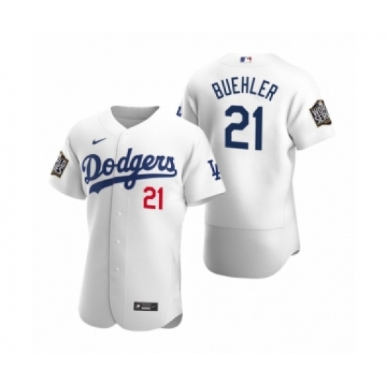 Men's Los Angeles Dodgers #21 Walker Buehler Nike White 2020 World Series Authentic Jersey