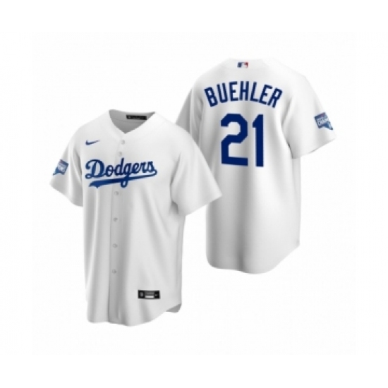 Men's Los Angeles Dodgers #21 Walker Buehler White 2020 World Series Champions Replica Jersey