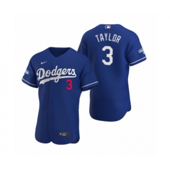 >Men's Los Angeles Dodgers #3 Chris Taylor Royal 2020 World Series Champions Authentic Jersey