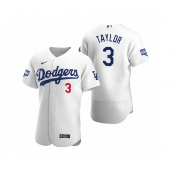 Men's Los Angeles Dodgers #3 Chris Taylor White 2020 World Series Champions Authentic Jersey
