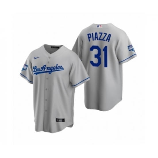 Men's Los Angeles Dodgers #31 Mike Piazza Gray 2020 World Series Champions Road Replica Jersey