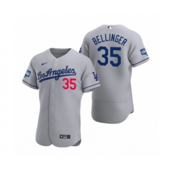 Men's Los Angeles Dodgers #35 Cody Bellinger Gray 2020 World Series Champions Road Authentic Jersey