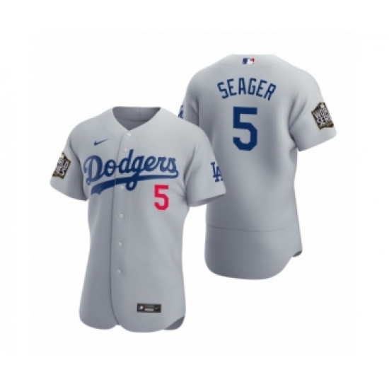 Men's Los Angeles Dodgers #5 Corey Seager Nike Gray 2020 World Series Authentic Jersey