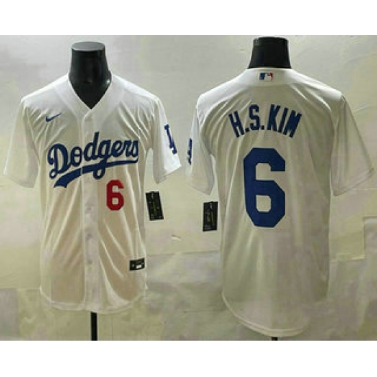 >Men's Los Angeles Dodgers #6 Hyeseong Kim White Cool Base Jersey