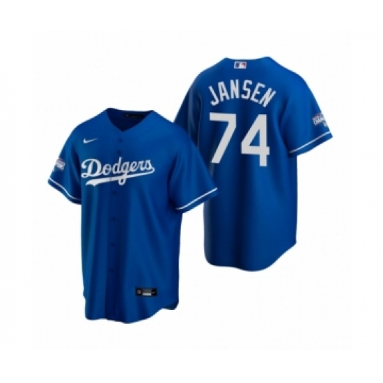 >Men's Los Angeles Dodgers #74 Kenley Jansen Royal 2020 World Series Champions Replica Jersey