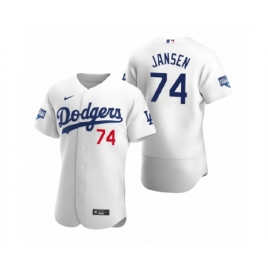 Men's Los Angeles Dodgers #74 Kenley Jansen White 2020 World Series Champions Authentic Jersey