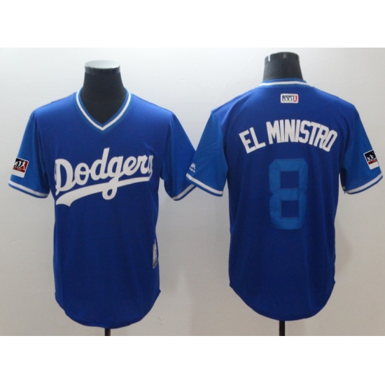 >Men's Los Angeles Dodgers #8 Manny Machado El Ministro Royal Players Weekend Team Jersey