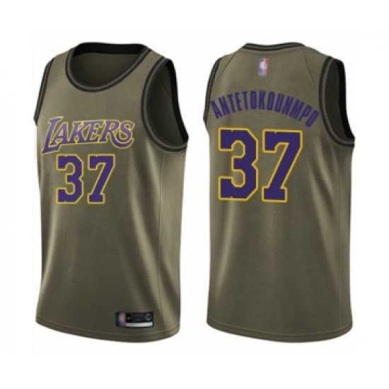 >Men's Los Angeles Lakers #37 Kostas Antetokounmpo Swingman Green Salute to Service Basketball Jersey