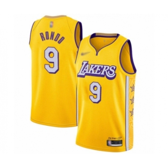 >Men's Los Angeles Lakers #9 Rajon Rondo Swingman Gold 2019-20 City Edition Basketball Jersey