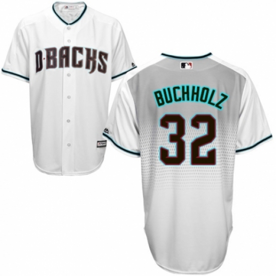 Men's Majestic Arizona Diamondbacks #32 Clay Buchholz Replica White/Capri Cool Base MLB Jersey