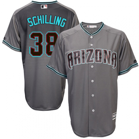 Home>MLB>Arizona Diamondbacks>Curt Schilling>Men's Majestic Arizona Diamondbacks #38 Curt Schilling Replica Gray/Turquoise Cool Base MLB Jersey