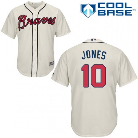 Men's Majestic Atlanta Braves #10 Chipper Jones Replica Cream Alternate 2 Cool Base MLB Jersey