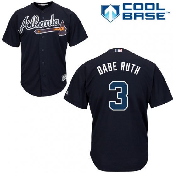 Men's Majestic Atlanta Braves #3 Babe Ruth Replica Blue Alternate Road Cool Base MLB Jersey