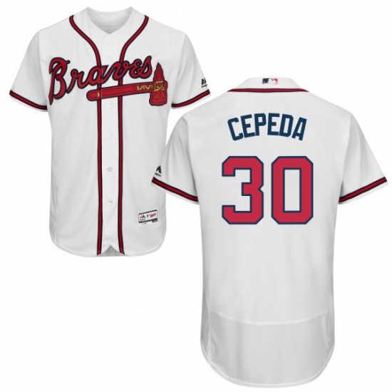 Men's Majestic Atlanta Braves #30 Orlando Cepeda White Home Flex Base Authentic Collection MLB Jersey