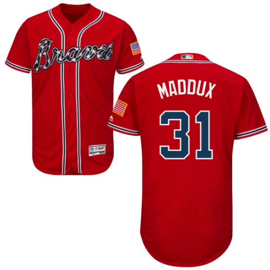 Home>MLB>Atlanta Braves>Greg Maddux>Men's Majestic Atlanta Braves #31 Greg Maddux Red Alternate Flex Base Authentic Collection MLB Jersey