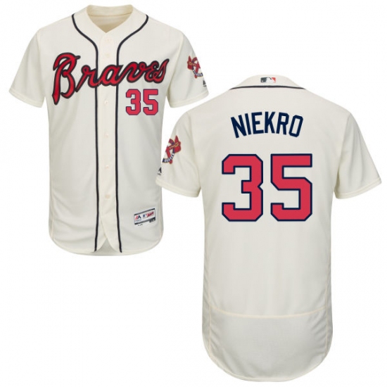 Men's Majestic Atlanta Braves #35 Phil Niekro Cream Alternate Flex Base Authentic Collection MLB Jersey