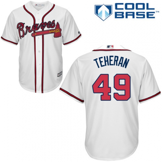 Men's Majestic Atlanta Braves #49 Julio Teheran Replica White Home Cool Base MLB Jersey