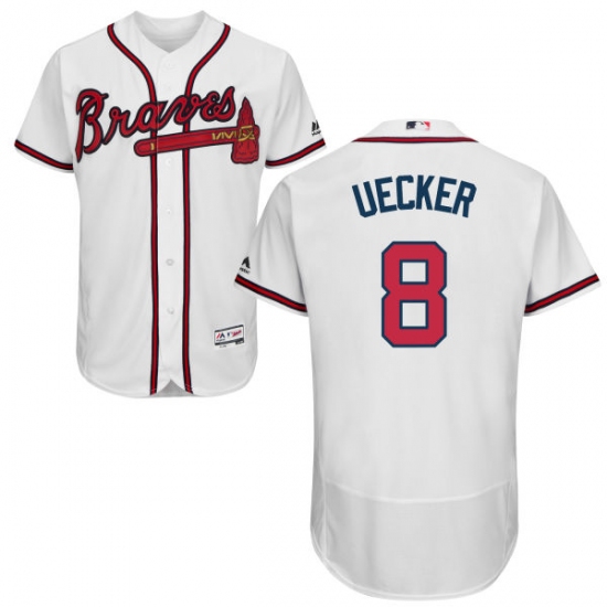 Men's Majestic Atlanta Braves #8 Bob Uecker White Home Flex Base Authentic Collection MLB Jersey