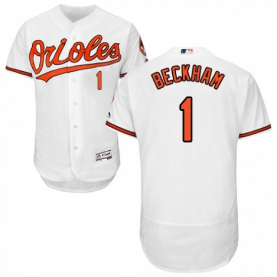 Men's Majestic Baltimore Orioles #1 Tim Beckham White Home Flex Base Authentic Collection MLB Jersey