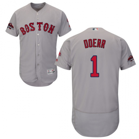 Men's Majestic Boston Red Sox #1 Bobby Doerr Grey Road Flex Base Authentic Collection 2018 World Series Champions MLB Jersey