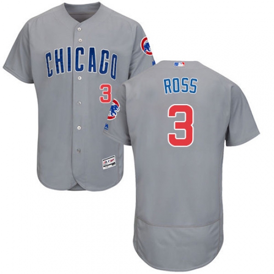 Home>MLB>Chicago Cubs>David Ross>Men's Majestic Chicago Cubs #3 David Ross Grey Road Flexbase Authentic Collection MLB Jersey