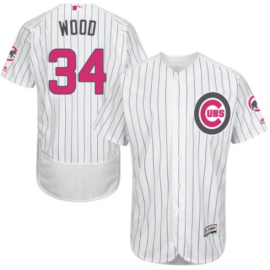 Men's Majestic Chicago Cubs #34 Kerry Wood Authentic White 2016 Mother's Day Fashion Flex Base MLB Jersey