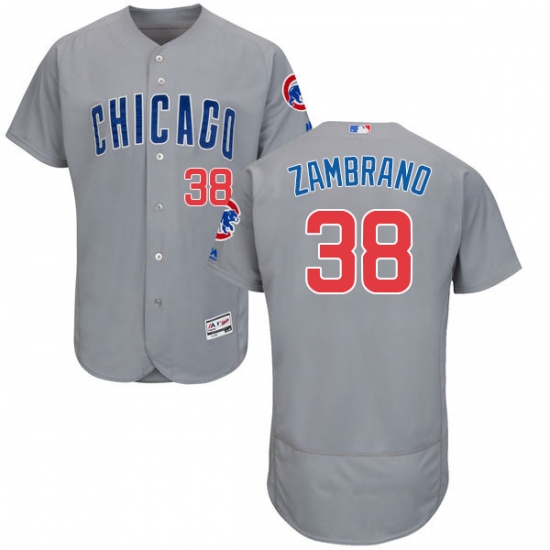 Home>MLB>Chicago Cubs>Carlos Zambrano>Men's Majestic Chicago Cubs #38 Carlos Zambrano Grey Road Flex Base Authentic Collection MLB Jersey