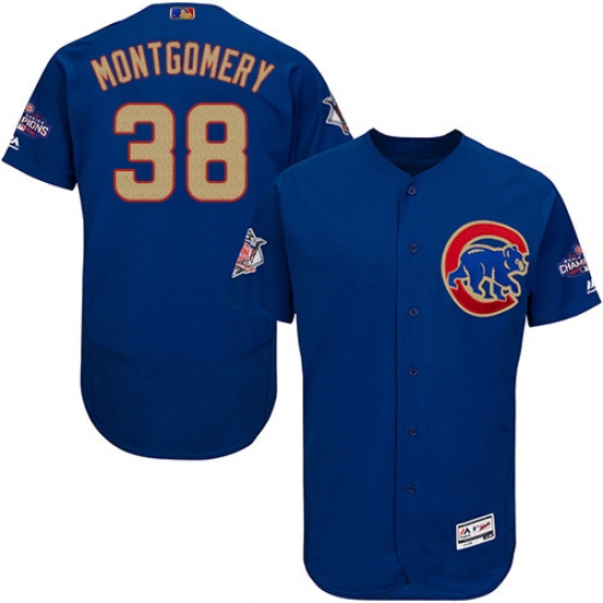 Home>MLB>Chicago Cubs>Mike Montgomery>Men's Majestic Chicago Cubs #38 Mike Montgomery Royal Blue 2017 Gold Champion Flexbase Authentic Collection MLB Jersey