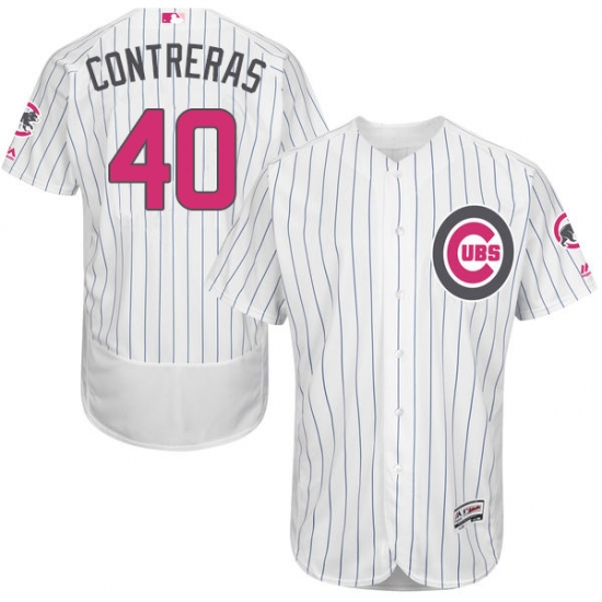 Home>MLB>Chicago Cubs>Willson Contreras>Men's Majestic Chicago Cubs #40 Willson Contreras Authentic White 2016 Mother's Day Fashion Flex Base MLB Jersey