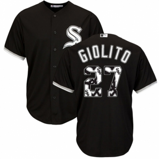 Men's Majestic Chicago White Sox #27 Lucas Giolito Authentic Black Team Logo Fashion Cool Base MLB Jersey