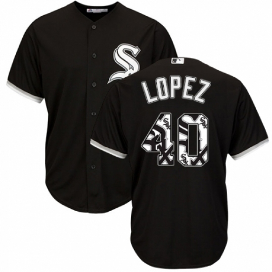 Men's Majestic Chicago White Sox #40 Reynaldo Lopez Authentic Black Team Logo Fashion Cool Base MLB Jersey
