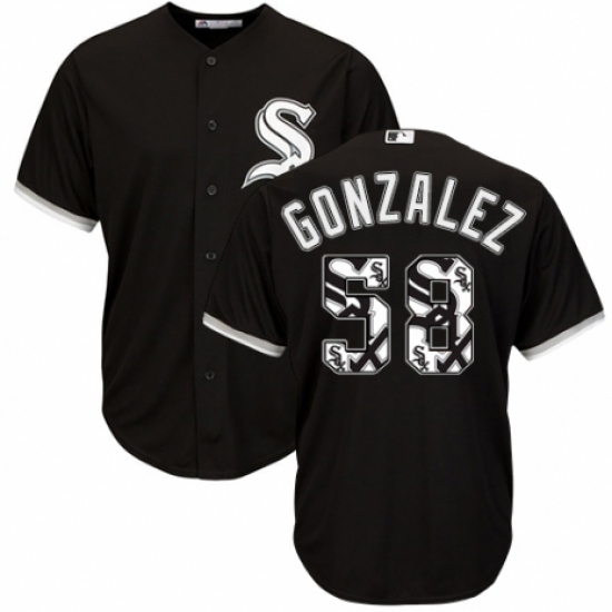Men's Majestic Chicago White Sox #58 Miguel Gonzalez Authentic Black Team Logo Fashion Cool Base MLB Jersey