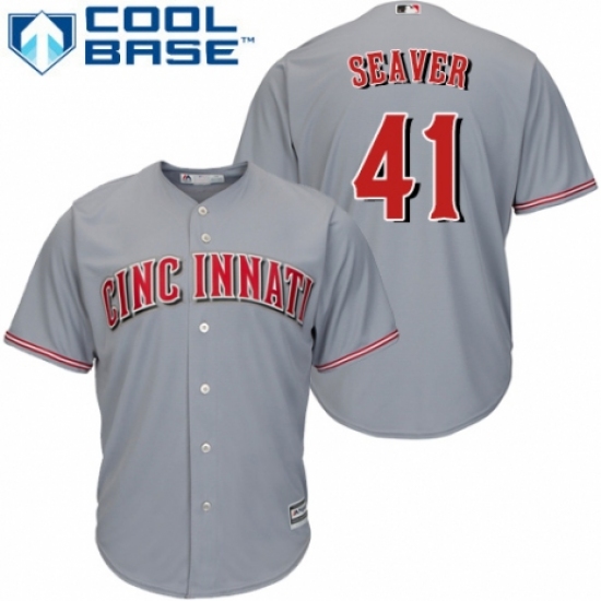 Men's Majestic Cincinnati Reds #41 Tom Seaver Replica Grey Road Cool Base MLB Jersey