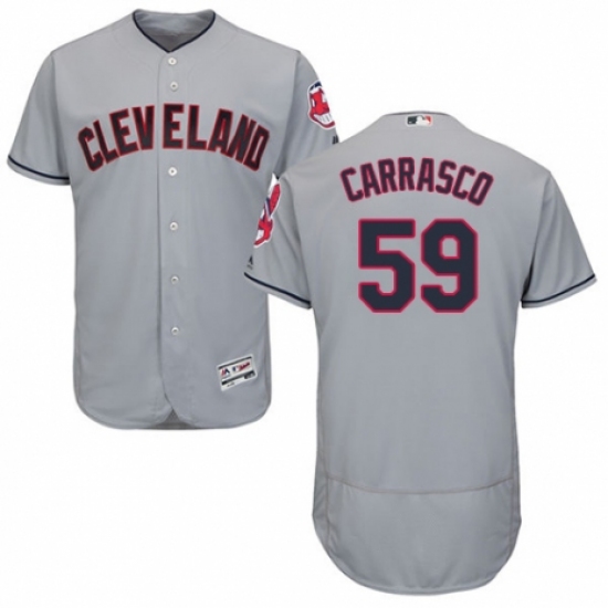 >Men's Majestic Cleveland Indians #59 Carlos Carrasco Grey Road Flex Base Authentic Collection MLB Jersey