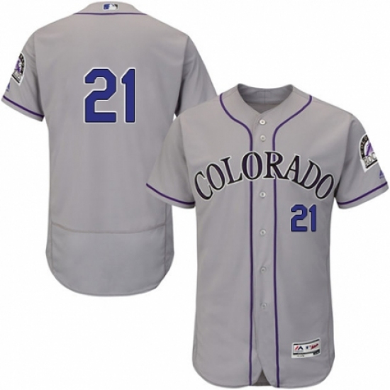 Men's Majestic Colorado Rockies #21 Kyle Freeland Grey Road Flex Base Authentic Collection MLB Jersey