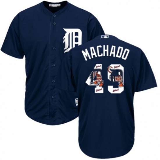 Men's Majestic Detroit Tigers #49 Dixon Machado Authentic Navy Blue Team Logo Fashion Cool Base MLB Jersey