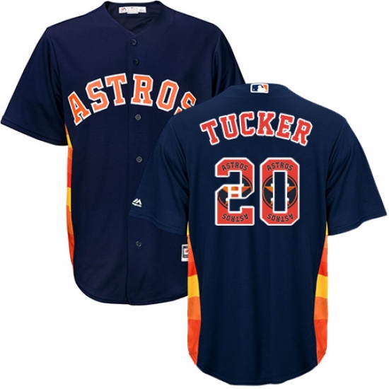Home>MLB>Houston Astros>Preston Tucker>Men's Majestic Houston Astros #20 Preston Tucker Authentic Navy Blue Team Logo Fashion Cool Base MLB Jersey
