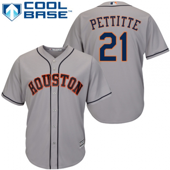 Home>MLB>Houston Astros>Andy Pettitte>Men's Majestic Houston Astros #21 Andy Pettitte Replica Grey Road Cool Base MLB Jersey