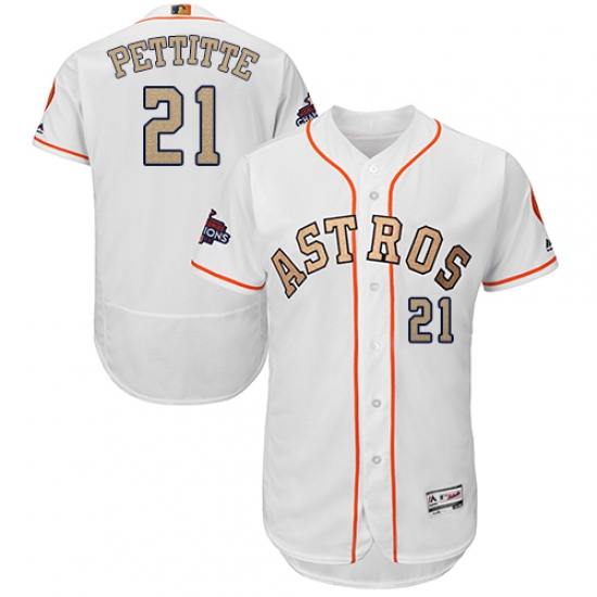 Home>MLB>Houston Astros>Andy Pettitte>Men's Majestic Houston Astros #21 Andy Pettitte White 2018 Gold Program Flex Base Authentic Collection MLB Jersey