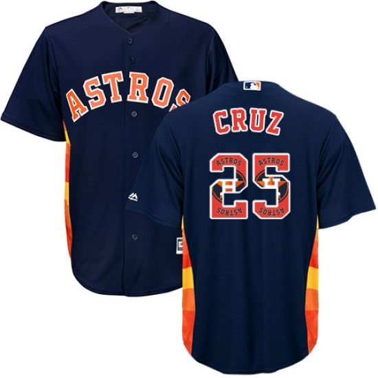 Men's Majestic Houston Astros #25 Jose Cruz Jr. Authentic Navy Blue Team Logo Fashion Cool Base MLB Jersey