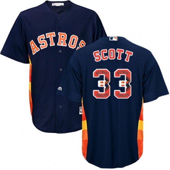 Men's Majestic Houston Astros #33 Mike Scott Authentic Navy Blue Team Logo Fashion Cool Base MLB Jersey