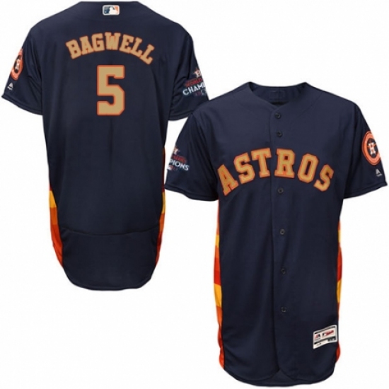 >Men's Majestic Houston Astros #5 Jeff Bagwell Navy Blue Alternate 2018 Gold Program Flex Base Authentic Collection MLB Jersey