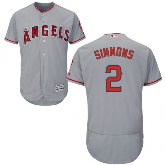 Men's Majestic Los Angeles Angels of Anaheim #2 Andrelton Simmons Grey Road Flex Base Authentic Collection MLB Jersey
