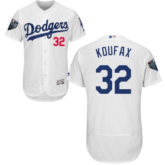 Men's Majestic Los Angeles Dodgers #32 Sandy Koufax White Home Flex Base Authentic Collection 2018 World Series MLB Jersey
