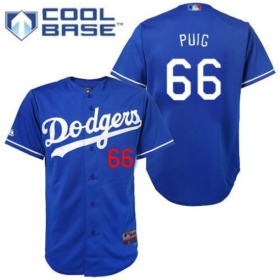 Home>MLB>Los Angeles Dodgers>Yasiel Puig>Men's Majestic Los Angeles Dodgers #66 Yasiel Puig Replica Royal Blue Cool Base MLB Jersey